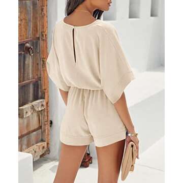 Show moreIntroducing the Women's Casual V Neck Rompers – a delightful blend of style, comfort, and practicality that is perfect for the modern woman. Designed with a breathable, lightweight, and soft fabric, this jumpsuit ensures you remain cool and comfortable whether you are attending a casual outing or enjoying a sunny summer day. Featuring an elegant V neckline and two lovely half bell sleeves, this romper offers a chic aesthetic that seamlessly transitions from day to night. The keyhole back not only adds a touch of uniqueness but also provides convenience when slipping into this fabulous piece. Embrace your silhouette with the high waistband and self-tie belt that accentuates your figure, leaving you feeling confident and stylish.