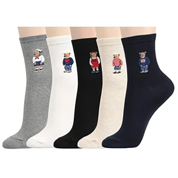 Show moreIntroducing our Women's Cool Animal Fun Crazy Socks (Bear 5 Pairs) – the ultimate combination of style, comfort, and functionality. Designed specifically for women, these socks fit shoe sizes 5-9, offering the perfect snug fit for your feet. Crafted from a luxurious blend of 78% combed cotton, 18% spandex, 2% polyester, and 2% polyurethane, these socks provide a soft touch that feels gentle against your skin while ensuring they maintain their shape after every wash. Each pair features a playful bear design along with other trendy patterns, making them a fashionable addition to any outfit.