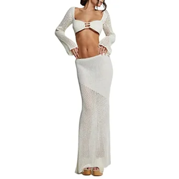 Show more Introducing the Women's Crochet Knit 2 Piece Skirt Sets - the perfect blend of elegance and comfort for any casual outing or beach day. This stunning ensemble features a hollow out knitted crop top paired with a chic side slit bodycon long skirt, skillfully crafted to accentuate your figure while providing a breathable, lightweight feel. Made from a quality yarn that mimics the look of luxury without the hefty price tag, this set promises to turn heads wherever you go. Whether you're dressing up for a summer party or lounging at the beach, this versatile outfit will keep you stylish and comfortable all day long.