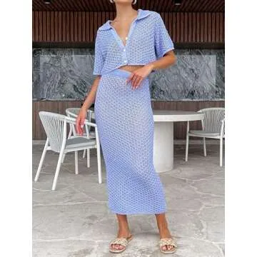 While many two-piece sets exist in the market, this Women's Crochet Knit 2 Piece Skirt Set separates itself with its combination of quality fabric, eye-catching design, and affordability. Competitors often compromise on comfort or style. In contrast, this set balances both perfectly, making it suitable for both everyday wear and special occasions. Additionally, the crochet detail enhances its fashion appeal compared to standard sets that often lack distinctive features.