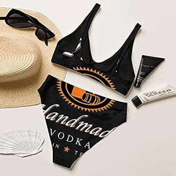 Women's Crop Top High Waist Cheeky Bikini Set Tito's Vodka Two Piece Swimsuits Black