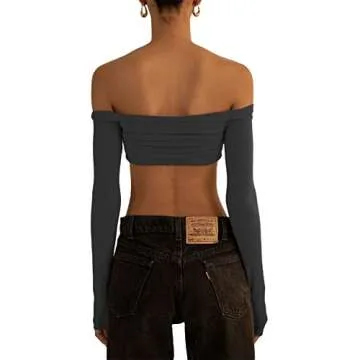 Show moreElevate your wardrobe with our Women’s Crop Tops Sexy Knit Mesh Sheer, designed for the modern woman who values style and comfort. This trendy top features a daring off-shoulder silhouette and long sleeves, making it the perfect choice for both casual outings and chic parties. Crafted from lightweight, breathable polyester, this crop top ensures you stay comfortable all day long, whether you’re dancing the night away or enjoying brunch with friends. The delicate ruching at the bust adds a touch of femininity, while the sheer mesh design allows for versatility; it easily transitions from day to night, pairing seamlessly with your favorite high-waisted pants or skirts.
