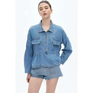 Show moreIntroducing the Women's Denim Cropped Top Babydoll, a quintessential addition to your wardrobe that blends style, comfort, and versatility. Made from a premium blend of high-quality cotton and polyester, this cropped top promises softness and durability, ensuring it not only feels good against your skin but also withstands the test of time. Featuring a chic V-neck design, long sleeves, and a trendy button-down collar, this top effortlessly brings a touch of sophistication to your casual outfits.