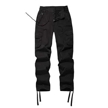 Women's Drawstring Stretchy Waist Relaxed Fit Cotton Outdoor Tactics Combat Multi Pocket Cargo Hiking Pants Black S