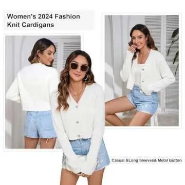 Featuring a solid color and black-and-white striped design, the cardigan includes practical details like metal button closures, long sleeves, and an open-front style that allows for versatility in your outfit choices. Pair it effortlessly with necklaces, denim jeans, leggings, or skirts to elevate your wardrobe. This cropped knit cardigan is a wardrobe essential that offers both comfort and style.