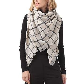 Show moreThe Women's Fall Winter Scarf is the perfect blend of warmth and style, designed to elevate your autumn and winter wardrobe. Crafted from high-quality, soft materials, this classic scarf features a beautiful beige plaid pattern that adds a touch of elegance to any outfit. Its large, chunky design allows it to be used as a cozy wrap or blanket, providing not only fashionable flair but also practical warmth, making it a must-have accessory for chilly days. The tassel details lend a playful edge, giving you multiple styling options while ensuring comfort and versatility.
