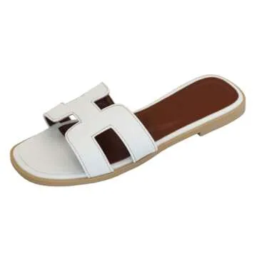 Women's Flat Sandals, Slip on Slides Summer Fall Shoes Cute Open Toe Slippers (White, Adult, Women, 10, Numeric, US Footwear Size System, Medium)