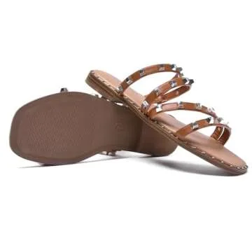 Show moreStep into the season with the ultimate blend of comfort and style with our Women's Flat Slides Sandals. Featuring a chic round open toe design and adorned with trendy rivet decorative straps, these sandals are a perfect embodiment of punk elegance. Crafted for those with wider feet, we recommend going up a size for the perfect fit. Whether you're heading to the beach, a casual outing, or a leisurely day out, these sandals ensure you do so in fashion-forward style. The unique bandage style paired with eye-catching rivets offers a distinct look that sets you apart from the crowd.