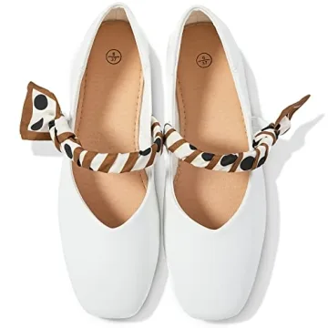 Elegant Women's Ballet Flats with Straps - Comfortable & Dressy (White, US7)