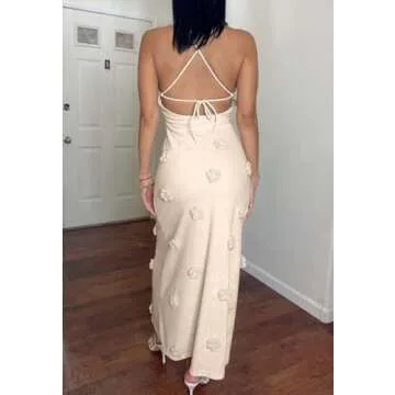 Show moreStep into the season with confidence and flair in our stunning Women's Halter Knit Maxi Dress. This exquisite gown features a chic backless design and beautifully detailed 3D florals, making it the perfect addition to your spring wardrobe. Crafted with a blend of comfort and elegance, the high slit adds a touch of sexiness, ensuring you turn heads at every event. Lightweight and breathable, this dress is ideal for warm beach days or sophisticated gatherings. You’ll love the way you look and feel in this fashionable statement piece, perfect for any modern woman.