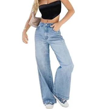 Women's Jeans-Casual Denim Pants Straight Wide Leg Cargo Jeans High Waisted Baggy Jeans for Women Teen Girls (Dark Blue, S)