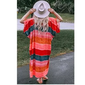 Women's Long Cotton Rainbow Striped Kimono Cardigan Dusters Summer Beach Cover Ups Boho Resort Wear Wraps Shawls XL