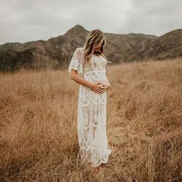 This gown transcends the ordinary with its romantic allure and exceptional comfort. Imagine donning this breathtaking dress, feeling the soft lace against your skin, and embracing your beautiful maternity curves. Whether you're posing for photos or attending special events, this gown enhances your confidence, making every moment memorable. Pregnancy is a time of joy, and this dress embodies that happiness, creating the perfect blend of elegance and comfort tailored for you.