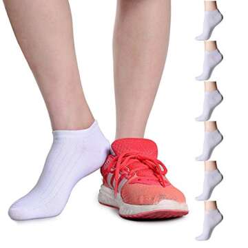 Women's Low Cut Socks,Ankle No Show Athletic Short Cotton Casual Socks (White-6 Pairs, Large)