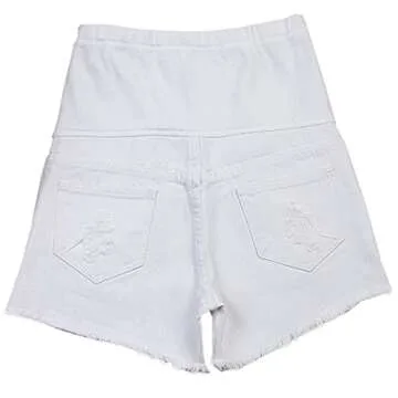 Introducing the ultimate blend of comfort and style with our Women's Maternity Shorts, crafted explicitly for the modern expectant mother. These high elastic waist denim jean shorts are designed to embrace your growing belly while providing maximum comfort all day long. Their trendy white color adds a chic touch to any summer wardrobe, making them perfect for various casual occasions.
