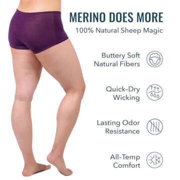 Women's Merino Boy Short by Woolly | RWS Certified | Soft, Breathable, Seattle Designed - Plum Purple - XL