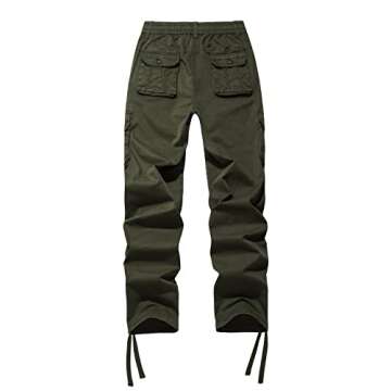 Women's Mid Rise Drawstring Elastic Waist Multi-Pocket Outdoor Sport Cotton Pants in Army Green