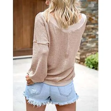 Show moreIntroducing the Women's Oversized V Neck Waffle Tops, the ultimate blend of style and comfort for any wardrobe! Made from a luxuriously soft and breathable waffle knit fabric, this sweater not only offers an exceptional fit but also ensures you feel fabulous all day long. With versatility in mind, this pullover can be worn off the shoulder, as a classic V-neck, or even as a one-shoulder top, allowing you to tailor your look easily.
