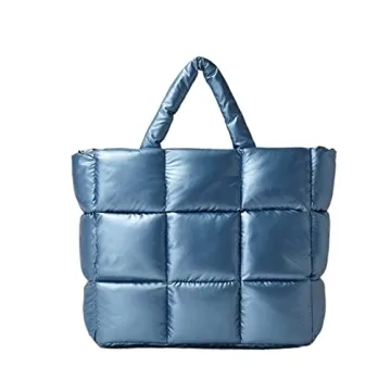 Women's Padded Cotton Tote Bag, Check Quilted Shoulder Messenger Bag, Large Capacity Fluffy Tote