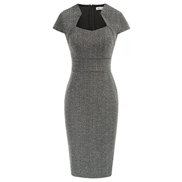 Show moreIntroducing the stunning GRACE KARIN tweed pencil dress, tailored for the modern woman who appreciates both elegance and comfort. This bodycon style dress features a timeless 50s design, combining allure with a refined professional look. Made with a chic tweed plaid pattern, the fabric is not only fashionable but also functional, providing a flattering fit that hugs your curves in all the right places. Its cap sleeves and v-neckline introduce an element of sophistication, while the back zipper closure ensures ease of wear, allowing you to slip in and out of this beauty without compromising your hairstyle or makeup.