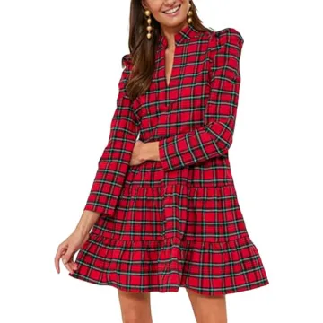 Step into comfort and style with our Women's Plaid Print Tunic Dress. Crafted from 100% cotton, this dress is not just a fashion statement but a promise of supreme softness and breathability. The loose and swingy babydoll fit allows for ease of movement, making it perfect for any occasion. Its beautiful plaid design, complete with a stylish stand collar and notched neckline, is sure to turn heads wherever you go. Plus, the functional pockets...