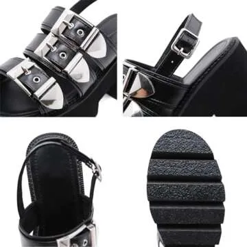 Women's Platform Open Toe Goth Sandals,Adjustable Ankle Buckle Comfortable Chunky High Heeled Fisherman Sandals Classic Non-Slip Punk Party Sandals (Black,7)