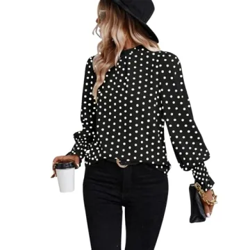 Show moreIntroducing the ultimate addition to your wardrobe: the Women’s Polka Dots Blouse Puff Ruffle Long Sleeve Tunic Top, available in a striking black and white dot design. Crafted from a delightful blend of 95% polyester and 5% elastane, this blouse offers optimal comfort while showcasing a chic fashion sense. Its light and breathable fabric ensures that you can wear it throughout the seasons—from sunny spring days to cool autumn evenings. The incorporation of stylish details, such as ruffled puff sleeves, a frill trim mock neck, and a keyhole back, elevates this top from basic to breathtaking, making it perfect for any occasion versus just an everyday outfit.