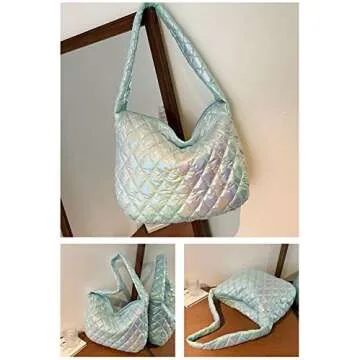 Women's Puffer Bag Quilted Shoulder Bag Lightweight Nylon Tote Bag Puffy Crossbody Bag Large Capacity Hobo Purse Handbag