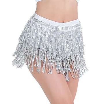 Women's Rave Bottoms Metallic Booty Shorts Fringe Sexy Sparkly Skirts, Silver Without Glasses, Small