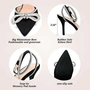 Women's Rhinestone Heeled Sandals Ankle Strap Lace Up Bow Pumps Satin Pointy Stilettos Backless Kitten Heels Wedding Dress