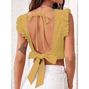 Women's Ruffle Sleeveless Tie Up Back Linen Crop Top – Perfect for Summer Adventures