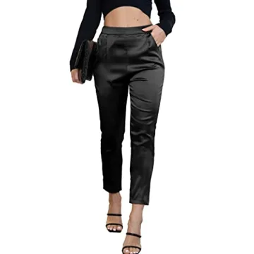 Women's Satin Silky Pants Dress Casual Pull on High Waist Pants with Pockets