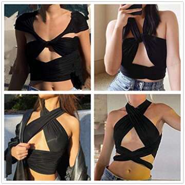 This sexy backless crop top features an innovative smart design that allows for a variety of styling options. The extra-long bandage material can be adjusted for a perfect fit, letting you create the look that flatters your unique shape. Whether you prefer a classic wrap style or a more daring cut-out design, this tank top transitions easily from day to night, making it a wardrobe essential.