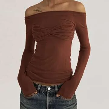 Show moreIntroducing our stunning Women's Sexy Crop Top Long Sleeve Off Shoulder — the ultimate fashion staple for your wardrobe! Crafted from premium polyester, this top is designed to elevate your style while ensuring a soft and comfy fit. The unique twisted ruched front adds a hint of sophistication to your look, making it perfect for any occasion. The sheer yet flattering mesh design provides coverage without compromising on style, making it an eye-catching addition to your collection.