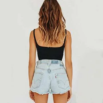 Women's Sexy Crop Tops Black Square Neck Sleeveless Tank Shirts Bralettes Corsets Like top Summer Outfits Elegant Tight Party Camis for Going Out Top Black M