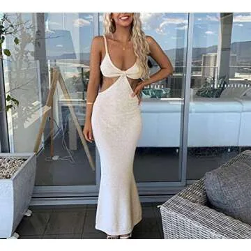 Show moreIntroducing the Women's Sexy Cut Out Bodycon Dress, a stunning addition to your summer wardrobe that effortlessly combines elegance and allure. Crafted with a high-quality knitted fabric, this dress not only hugs your curves in all the right places but also ensures your comfort during those hot summer days. The halter neck design creates a flattering silhouette, while the intricate cut-out details add a touch of sass, making it perfect for beach parties, cocktail gatherings, or any summer occasion. The length of this maxi dress offers a sophisticated look, whether you pair it with sandals for a day at the beach or strappy heels for an evening out.