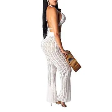 Show moreIntroducing the Women's Sexy Hollow Out Mesh Beach Bikinis and Split Crochet High Waist Pants Two Piece Outfits in elegant white, a perfect blend of sexy style and beachside comfort. This exquisite ensemble features a stunning hollow-out mesh design that adds a touch of allure while ensuring you stand out at the beach or pool party. The high waist crochet pants beautifully complement the bikini top, providing a flattering silhouette that’s both modern and chic. The thick fabric of the bikini is not only durable but also ensures that you're covered without compromising on style.