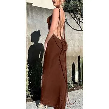Women’s Sexy Spaghetti Strap Backless Cami Dress Bodycon Summer Party Cocktail Formal Halter Sundress Brown