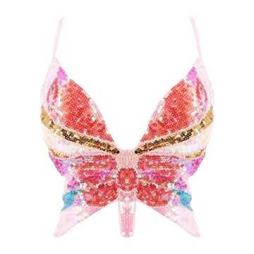 Women's Shimmer Sequin Sexy Crop Top Low-Cut Tube Top Butterfly Rave Tank Bandage Bra Belly Dance Vest Tops (N, One Size)