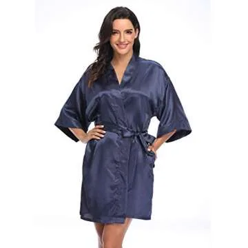 Women's Short Satin Kimono Bridesmaids Wedding Robes Silky Sleepwear,Navy