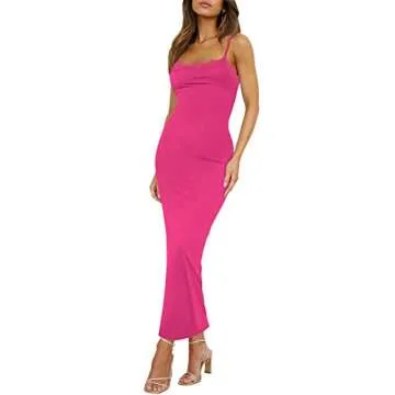 Women's Skimss Dupe Lace Long Slip Dress Sexy Casual Soft Lounge Sleeveless Spaghetti Strap Bodycon Maxi Dresses Rose S