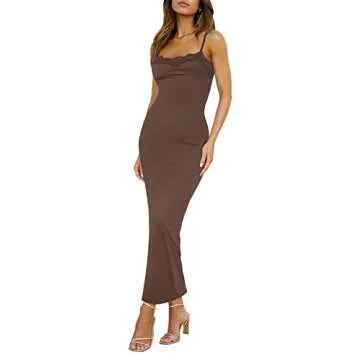 Women's Skimss Dupe Lace Long Slip Dress - Sexy Maxi Dress Brown L