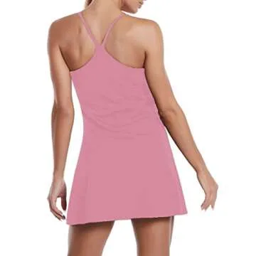Women's Sleeveless Exercise Tennis Dress with Built-in Bra & Shorts Golf Workout Athletic Dresses Pockets Pink