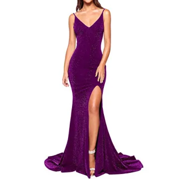Introducing the **Women's Spaghetti Straps Prom Dresses Long V-Neck Sparkling Grape Bridesmaid Dresses**, an exquisite choice for those looking to shine at any formal event! Crafted with a stunning **sparkly glitter finish** and made entirely from **100% polyester**, this dress boasts a luxurious feel while ensuring comfort throughout the evening. Whether you're attending a prom, a wedding, or a formal party, this striking gown is designed to turn heads and draw compliments. The long V-neck silhouette flatters...