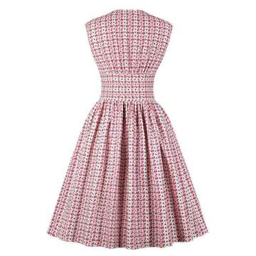 Women's Split Neck Floral Button 1950s Vintage Rockability Tea Dress AT14(Pink, S)