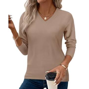 Women's Spring Sweaters 2025 Casual Thin Long Sleeve Pullover V Neck Lightweight Sweatshirts Cute Blouse Tops