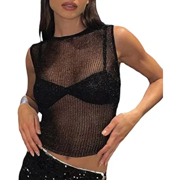 Women's Strapless Crochet Bandeau Knit Tube Top Slim Crop Corset Cami Sexy Sleeveless Tank Tops Sheer Hollow Out T-Shirt Vest