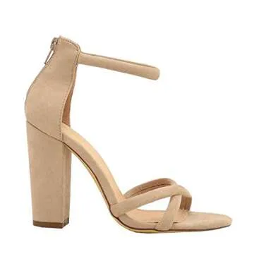 Women's Strappy Chunky Block High Heel Cross - Formal, Wedding, Party Simple Classic Pump (8, Taupe)