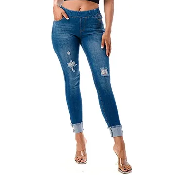 Show moreDiscover a new level of comfort and style with our Women’s Stretch Pull-On Skinny Ripped Distressed Denim Jeggings, designed to shape your silhouette while providing maximum ease of movement. Expertly crafted from a luxurious blend of soft, stretchy cotton, these jeggings mold to your body for a flattering fit that celebrates your curves. The semi-high waist design hugs you perfectly around the natural waistline, offering a stylish yet comfortable pull-on closure with an elastic waistband that creates a smooth silhouette without any awkward digging.