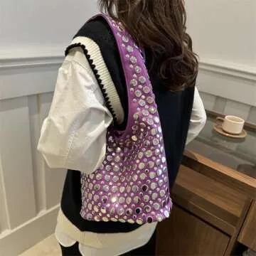 Women's Studded Shoulder Bag - Y2K 90s Punk Hobo Purse in Purple